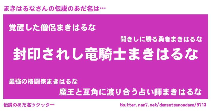 | 男性向けラノベタイトル風あだ名 | 『マキハルナアートオンライン』 |