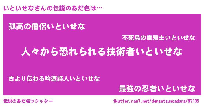 | ヒーロー風カッコイイあだ名 | 『仮面イトダー』『最強戦士イトイセナ』 |