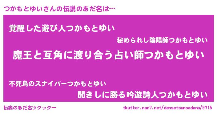 | ヒーロー風カッコイイあだ名 | 『最強戦士ツカモトユイ』『黄金騎士ツカ』 |
