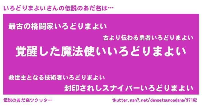 | 意味不明あだ名 | 『とにかく怪しいいろどりまよい』 |