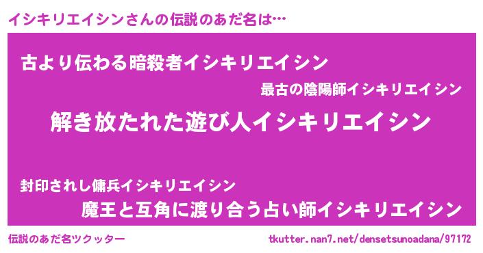 | ポケモン風あだ名 | 『ヒイシキリエイシン』『イシセウス』 |