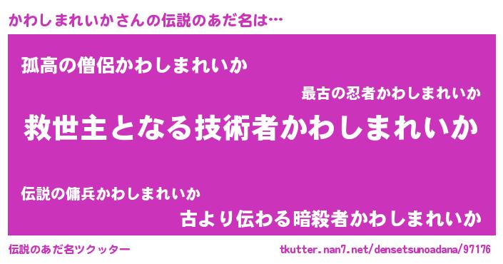 | ヘコむあだ名 | 『かわお』『かわしまれいか(笑)』 |