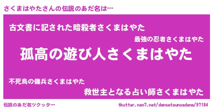 | ヒーロー風カッコイイあだ名 | 『暗黒騎士サク』『究極戦士サクマハヤタ』 |