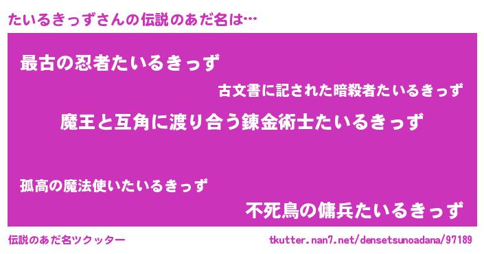 | ヒーロー風カッコイイあだ名 | 『愛の使者たいるきっず』『仮面タイダー』 |