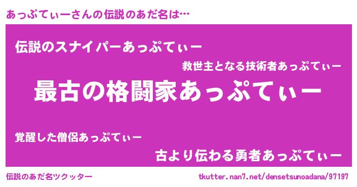 | 意味不明あだ名 | 『あっぷてぃーフォーエバー』 |