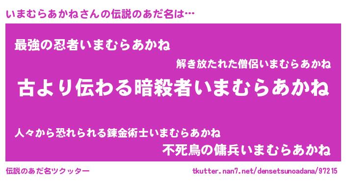 | 意味不明あだ名 | 『永久保存いまむらあかね』 |
