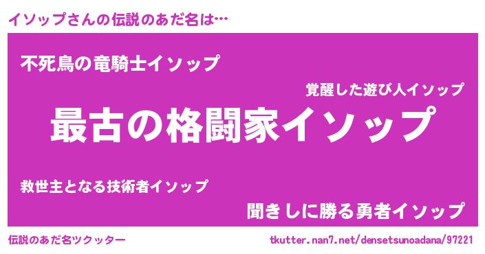 | ヒーロー風カッコイイあだ名 | 『仮面イソダー』『ウルトライソップマン』 |