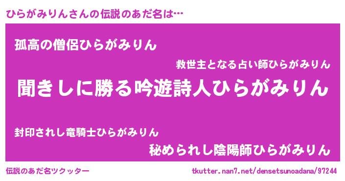 | 女子向けラノベタイトル風あだ名 | 『ひらがみりんアンティーク』 |