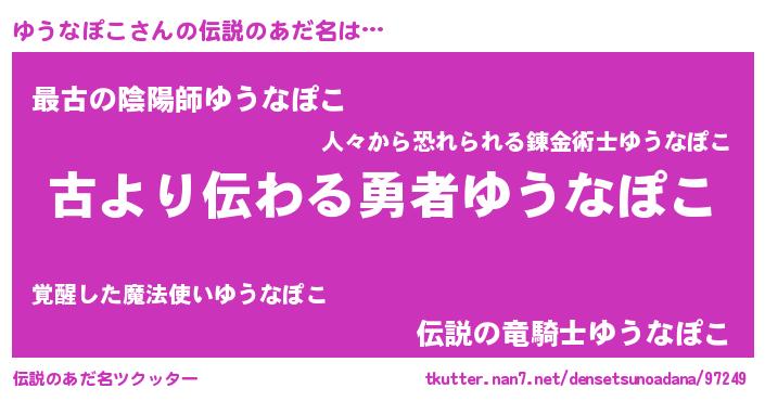 | 意味不明あだ名 | 『永久保存ゆうなぽこ』『自称ゆうなぽこ』 |