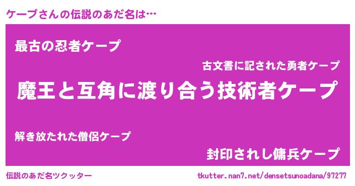 | ヒーロー風カッコイイあだ名 | 『愛の使者ケープ』『ウルトラケープマン』 |