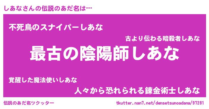 | ヒーロー風カッコイイあだ名 | 『ウルトラしあなマン』『スーパーシアナ』 |