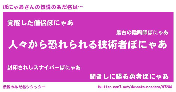 | 胡散臭い通販商品みたいなあだ名 | 『100人中100人が認めたマグネット磁石…その名も「ぼにゃあ」』 |