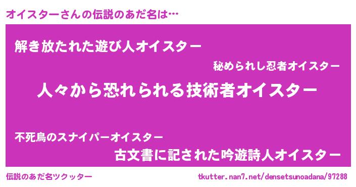 | ヒーロー風カッコイイあだ名 | 『仮面オイダー』『愛の使者オイスター』 |