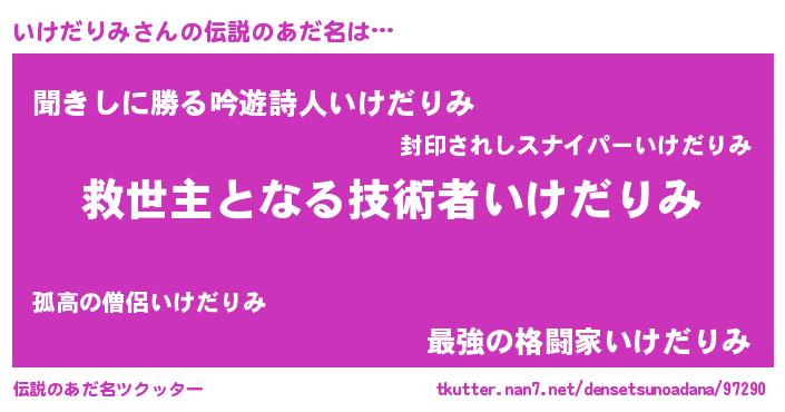 | 男性向けラノベタイトル風あだ名 | 『うちのいけだりみが世界を掌握している!』 |