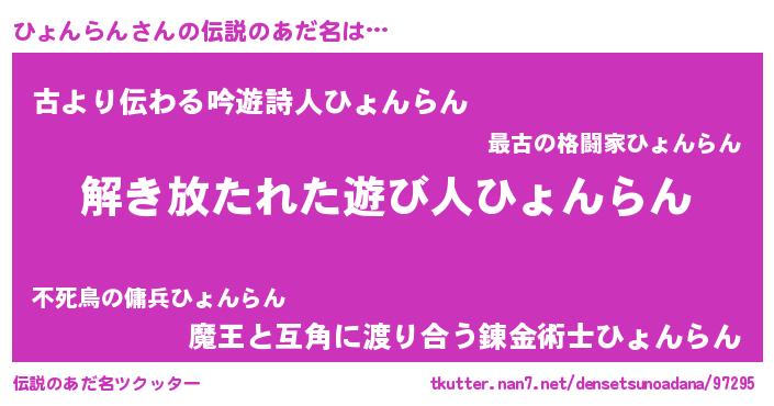 | 意味不明あだ名 | 『とにかく怪しいひょんらん』 |
