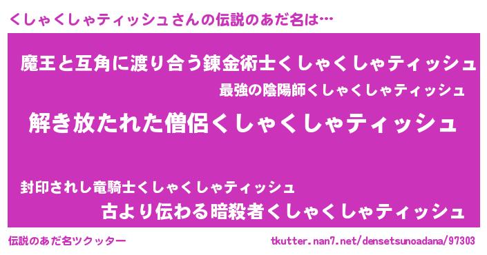 | 意味不明あだ名 | 『とにかく怪しいくしゃくしゃティッシュ』 |