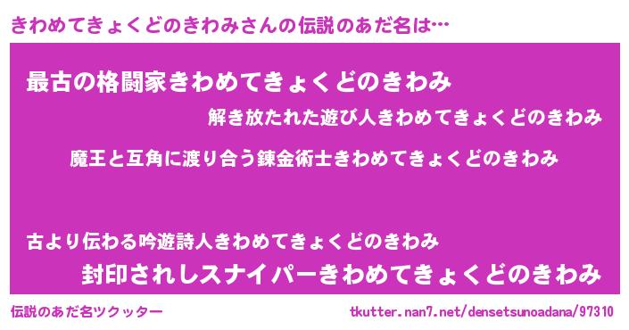 | 男性向けラノベタイトル風あだ名 | 『魔弾の王ときわめてきょくどのきわみ』 |