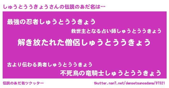 | 意味不明あだ名 | 『自称しゅうとううきょう』 |
