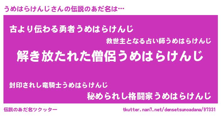 | ヘコむあだ名 | 『うめっ子』『うめはらけんじ(遠い目)』 |