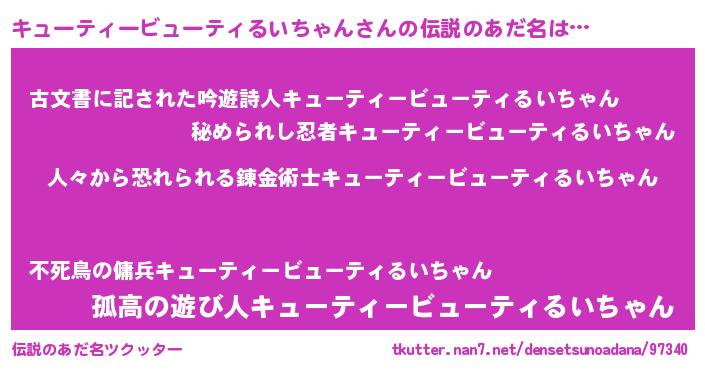 | ヒーロー風カッコイイあだ名 | 『正義の使者キューティービューティるいちゃん』 |