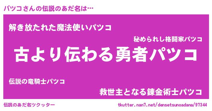 | ヒーロー風カッコイイあだ名 | 『ネオパツコ』『銀牙騎士パツ』 |