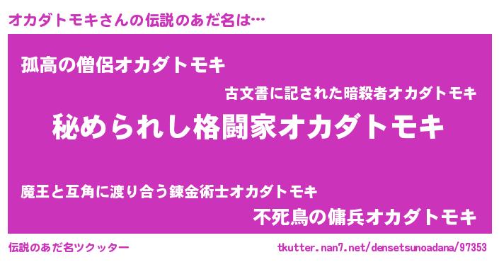 | 意味不明あだ名 | 『オカダトモキフォーエバー』 |