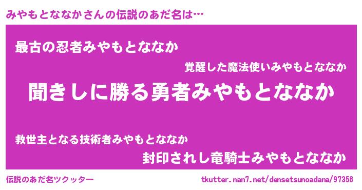| ヒーロー風カッコイイあだ名 | 『仮面ミヤダー』『ネオミヤモトナナカ』 |