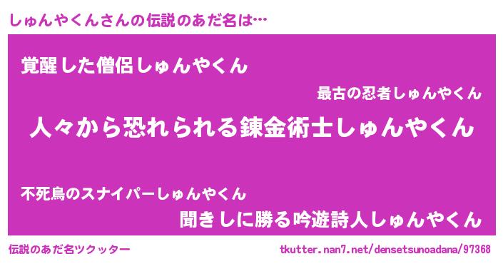 | 意味不明あだ名 | 『眠気覚ましガムしゅんやくん味』 |