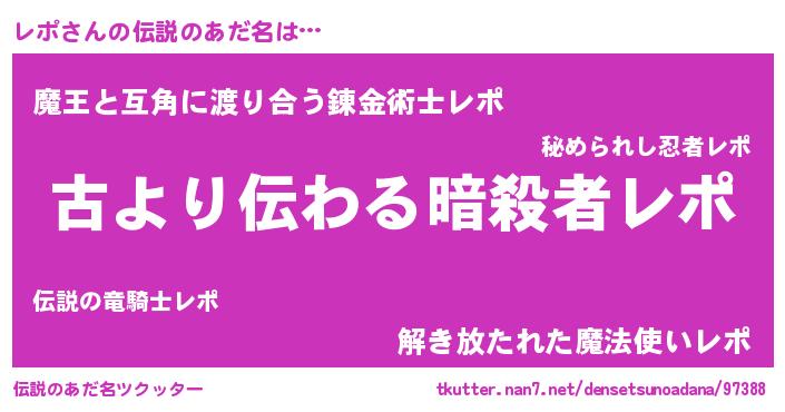 | ヒーロー風カッコイイあだ名 | 『ネオレポ』『慈愛の使者レポ』 |