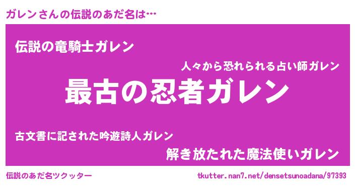 | 意味不明あだ名 | 『住所不定無職ガレン(68歳)』 |