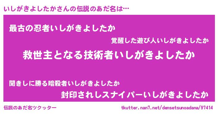 | ヒーロー風カッコイイあだ名 | 『最強戦士イシガキヨシタカ』 |