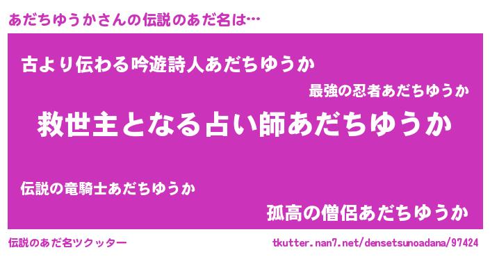 | ヘコむあだ名 | 『あだちゆうか(笑)』『あだお』 |