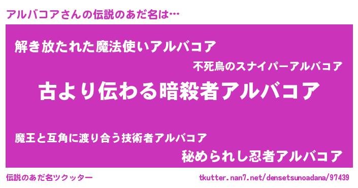 | 意味不明あだ名 | 『永久保存アルバコア』『自称アルバコア』 |