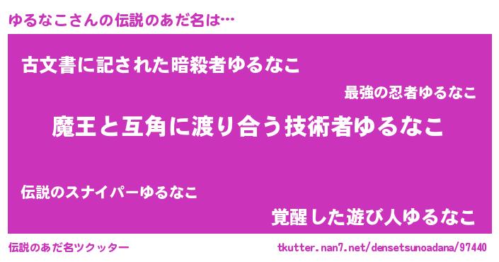 | ヒーロー風カッコイイあだ名 | 『愛の使者ゆるなこ』『究極戦士ユルナコ』 |