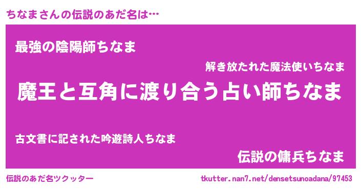 | 男性向けラノベタイトル風あだ名 | 『この素晴らしい世界にちなまを!』 |