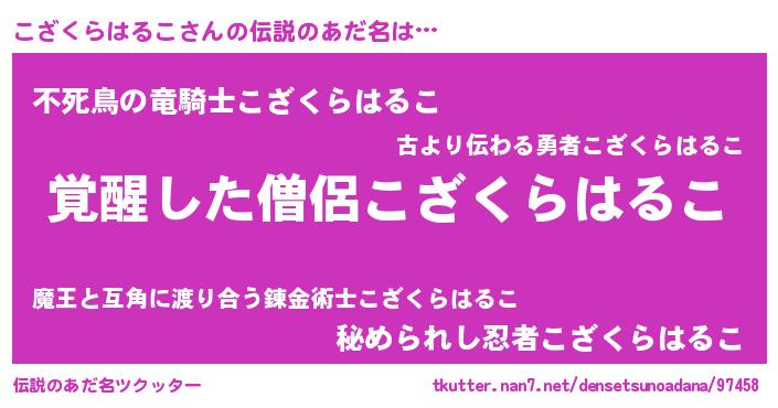 | 意味不明あだ名 | 『とにかく怪しいこざくらはるこ』 |