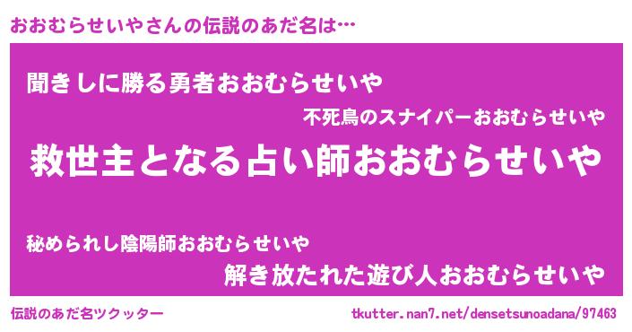 | 男性向けラノベタイトル風あだ名 | 『おおむらせいやに滅ぼされるだけの簡単なお仕事です』 |