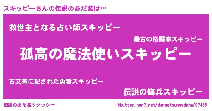 | 胡散臭い通販商品みたいなあだ名 | 『信頼と実績のサプリメント…その名も「スキッピー」』 |