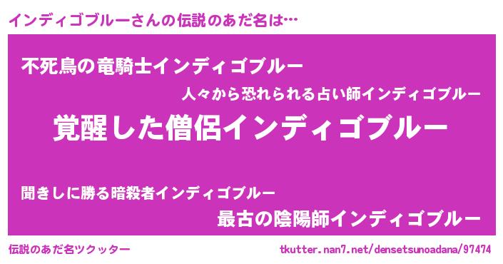 | 男性向けラノベタイトル風あだ名 | 『うちのインディゴブルーが世界を掌握している!』 |