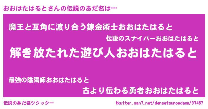 | ヒーロー風カッコイイあだ名 | 『ウルトラ戦士オオハタハルト』 |