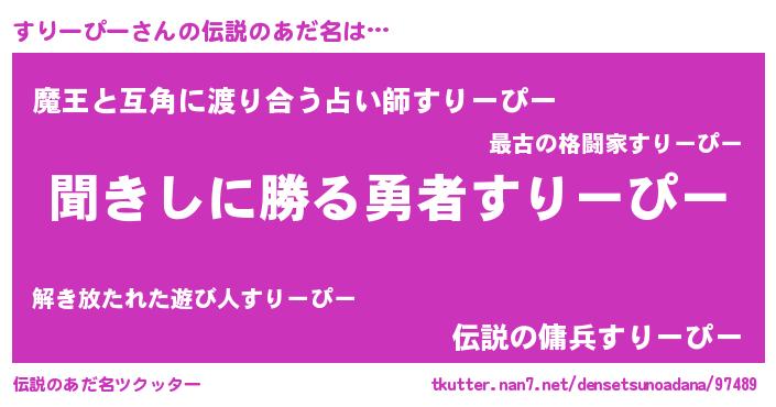 | 意味不明あだ名 | 『永久保存すりーぴー』 |