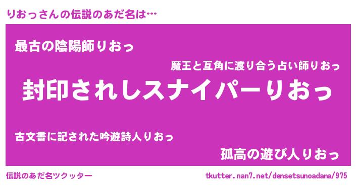 | ヒーロー風カッコイイあだ名 | 『スーパーリオッ』『ウルトラりおっマン』 |