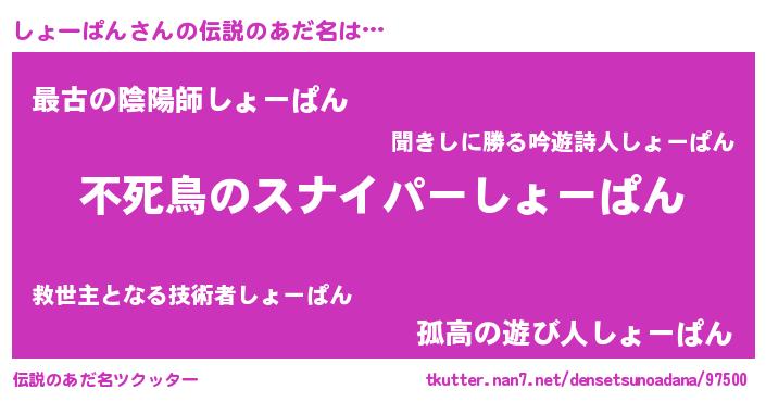 | ヒーロー風カッコイイあだ名 | 『スーパーショーパン』『暗黒騎士ショ』 |