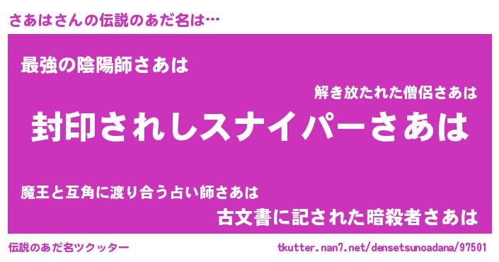 | ヒーロー風カッコイイあだ名 | 『仮面サアダー』『スーパーサアハ』 |