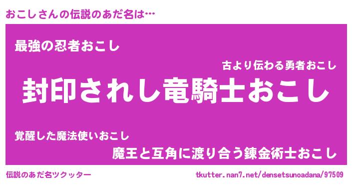 | 胡散臭い通販商品みたいなあだ名 | 『億万長者になれるブレスレット…その名も「おこし」』 |