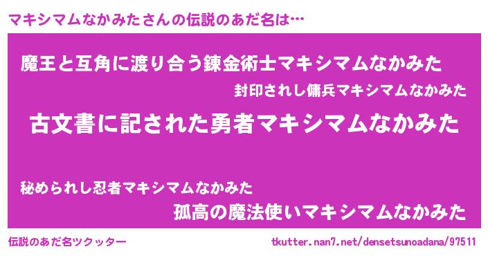 | 意味不明あだ名 | 『永久保存マキシマムなかみた』 |