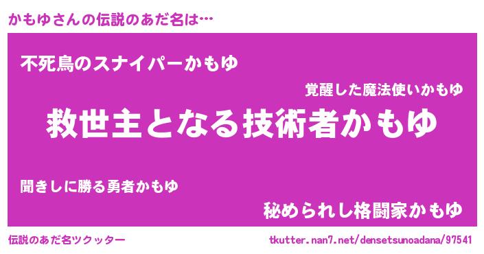 | ヒーロー風カッコイイあだ名 | 『慈愛の使者かもゆ』『スーパーカモユ』 |