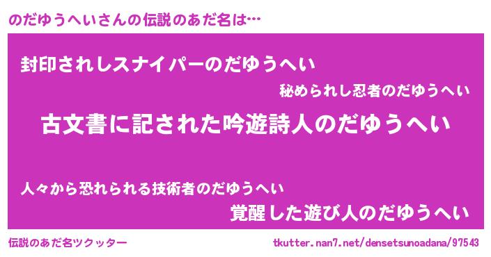 | 意味不明あだ名 | 『住所不定無職のだゆうへい(5歳)』 |