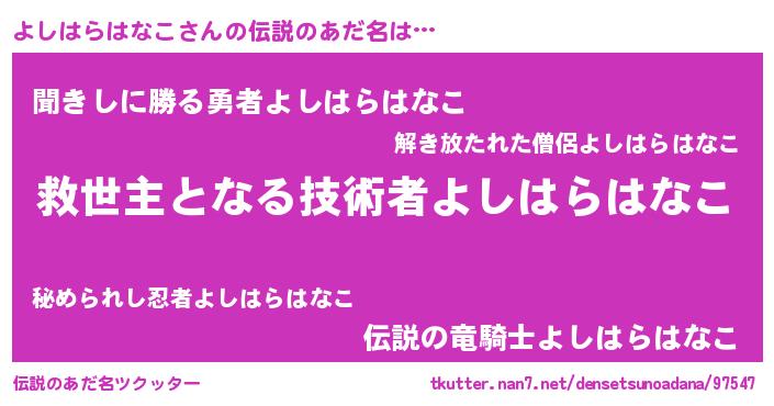 | ヒーロー風カッコイイあだ名 | 『天空の使者よしはらはなこ』 |