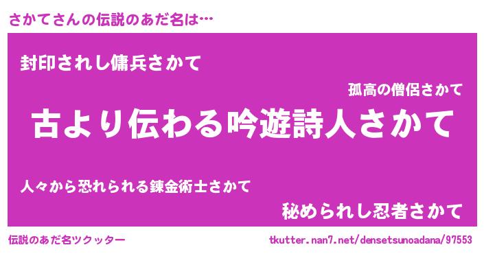| ヘコむあだ名 | 『さかて(笑)』『さかにゅー』 |
